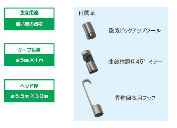 ●1mのカメラチューブが調査個所まで難なく届きます(有効長約1050㎜)。