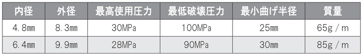 ■ポリエステルチューブの外側を、ステンレスハードワイヤーで 均一に編み上げた、耐圧性と適度な剛性のあるホース。