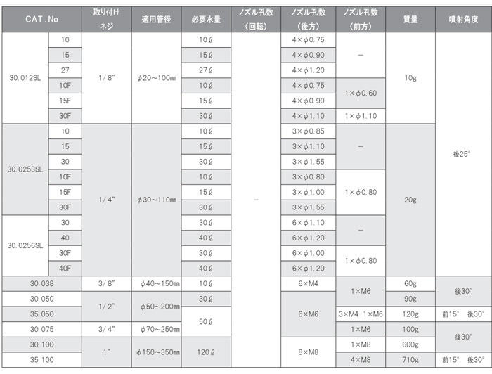 1つのノズルで角度・孔数を選択できるため状況に特化したノズルを選定可能です。