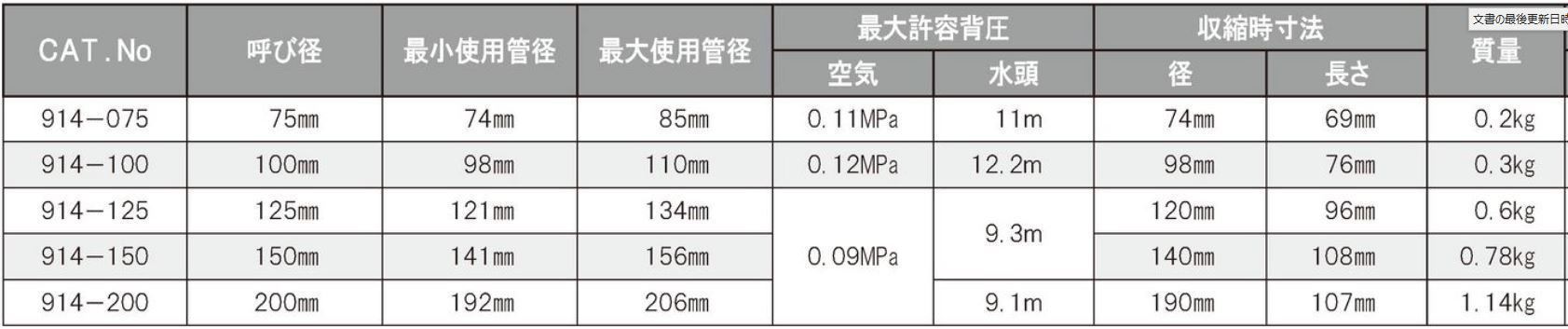 メカニカルプラグ INタイプ 100㎜(φ98~110㎜) 止水プラグ