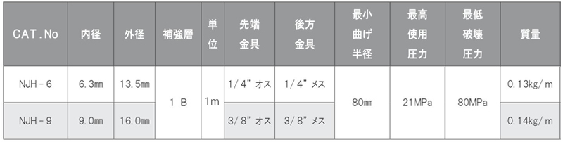 商品名 ニュージェットホースNJH-9 φ9.0x20m 両端金具3/8"付